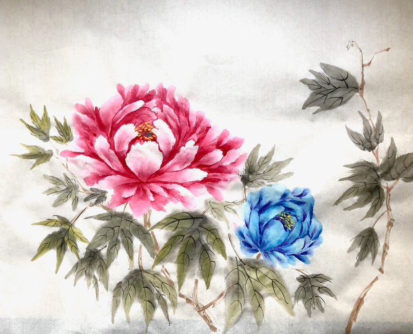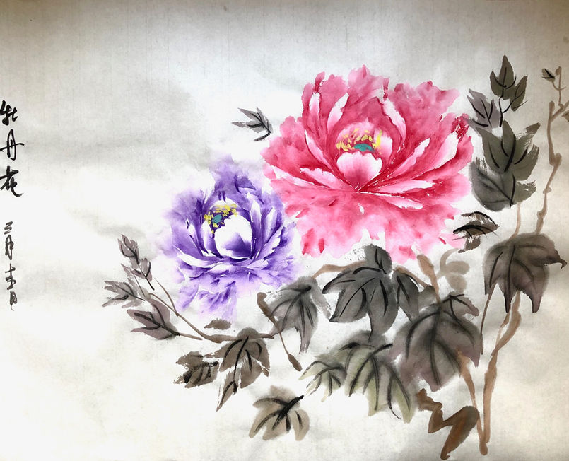 THÈME : Fleur de pivoine : Apprentissage des différentes méthodes de peinture (encre et belles couleurs de peinture chinoise)